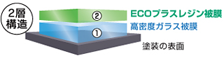 ②汚れの密着を防ぐ独特な防汚能力を持つECOプラスレジン被膜